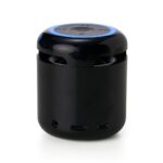 Caixa de som multimídia com relógio despertador. Produzida em plástico e com borrachas antiderrapantes na área inferior, a caixa de som tem bateria de longa duração, display de LED na área frontal, e anel de led brilhante na parte superior. A caixa de som executa nos modos bluetooth, rádio FM, cartão TF-microSD e entrada auxiliar P2. Acompanha cabo USB e manual em inglês e chinês.