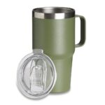 Caneca térmica de Inox com capacidade para 700ml. Acompanha uma tampa de plástico transparente.