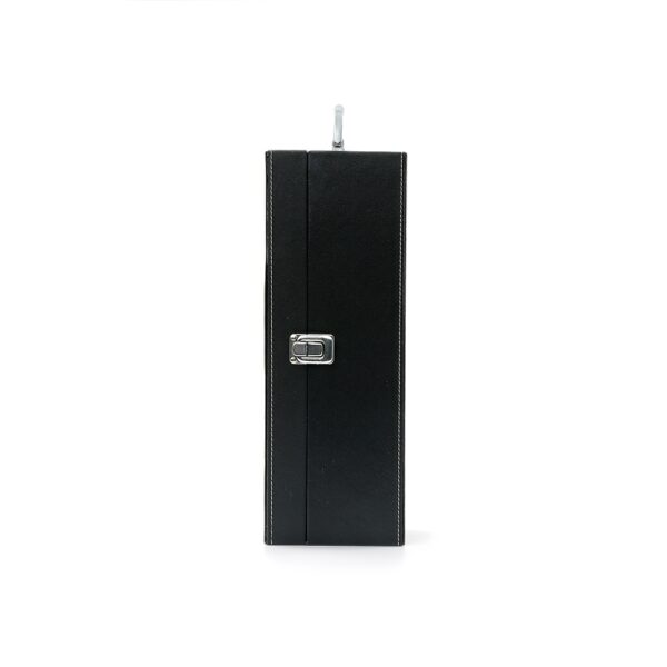 Descrição: Kit vinho 4 peças em maleta de couro sintético. Contém saca-rolhas metálico, bico condutor com tampa, cortador de lacre e wine colar. Maleta com alça, trava de segurança e parte interna revestida de veludo com área de acomodação para garrafa.