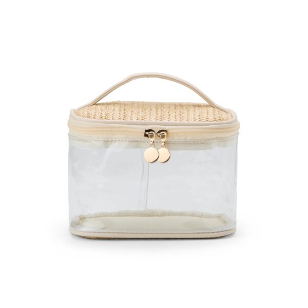 Delicadeza e charme natural são as características marcantes da nossa nécessaire. Produzida em PVC com detalhes em palha sintética, seu design permite uma visualização prática dos itens, mantendo-os sempre visíveis e ao alcance.