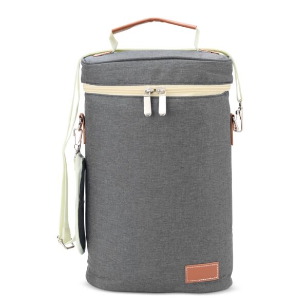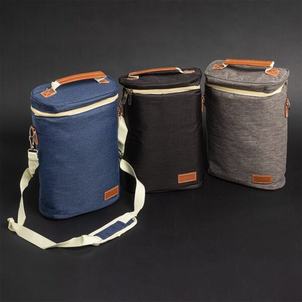 Descrição: Bebidas geladinhas e frescas por muito mais tempo! O nosso porta-garrafas térmico é excelente para garantir a temperatura das bebidas em qualquer lugar. Feito em nylon com detalhes em couro sintético, contém divisória integrada à bolsa. Ele comporta até duas garrafas e ainda conta com um suporte para abridor ou outros acessórios. Além disso, vem com alça de mão e alça de ombro ajustável e removível para maior conforto e praticidade. E para torná-lo ainda mais especial, oferece espaço para personalização, deixando-o único e exclusivo.