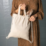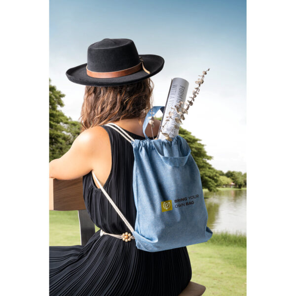 Sacola tipo mochila em 70% algodão reciclado e 30% poliéster reciclado